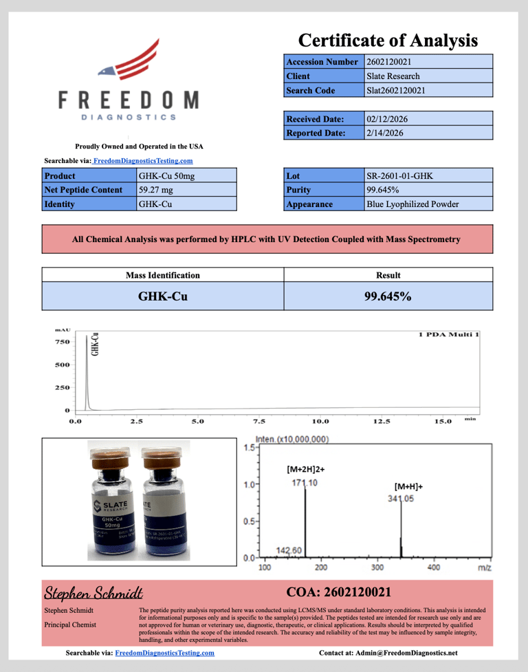 All products sold by Slate Research are intended strictly for laboratory research use only and are not for human or veterinary consumption, medical treatment, diagnosis, or therapeutic use. Products are supplied exclusively to qualified researchers, institutions, or laboratories.